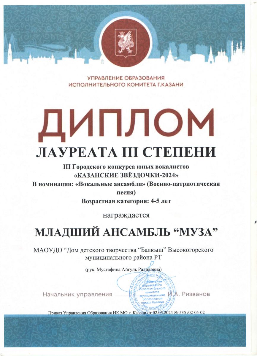 III Городской конкурс юных вокалистов "Казанские звездочки-2024" -Мустафина Асель, лауреат 3 степени