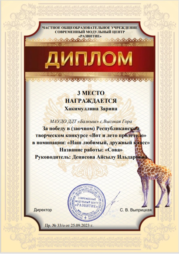 Республиканский творческий конкурс "Вот и лето пролетело" - Хакимуллина Зарина, 3 место