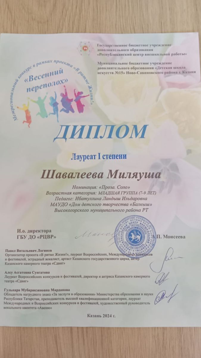 Межрегиональный конкурс "Весенний переполох" - Шавалеева Миляуша, лауреат 1 степени