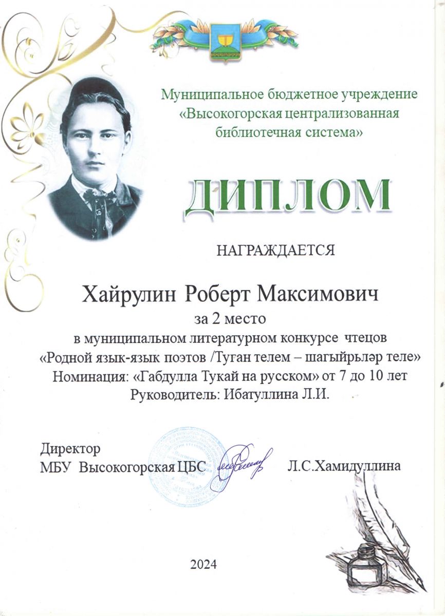 Муниципальный конкурс чтецов "Родной язык-язык поэтов" - Хайрулин Роберт, 2 место