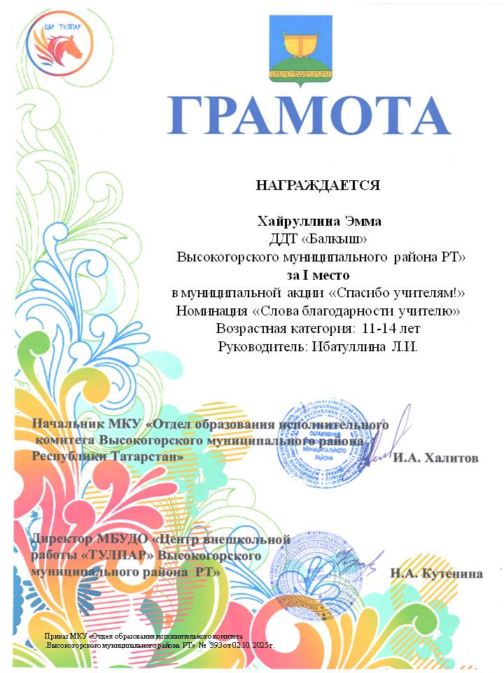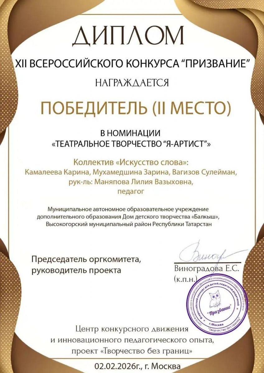 Муниципальное автономное образовательное учреждение дополнительного образования Дом детского творчества «Балкыш» Высокогорского муниципального района РТ