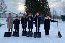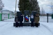 В День Неизвестного солдата учащиеся почистили от снега памятник в селе Березка и возложили венок в память павших и пропавших без вести в Великую Отечественную войну