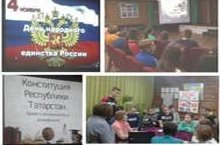 В период осенних каникул для учащихся были организованы и проведены праздничные мероприятия, посвященные Дню Единства и Конституции Республики Татарстан. Круглый стол "Мы такие разные, но мы вместе!", интеллектуальная викторина "Права и обязанности гражданина" обогатили знания детей в области истории и обществознания. Также их вниманию был представлен видеоролик "Мы едины, мы непобедимы!"