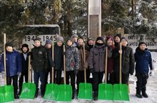 В рамках гражданско-патриотического месячника обучающиеся 6а, 6б классов приняли участие в очистке снега на территории обелиска