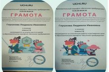 Грамотой учебной ппатформы"Учи.ру" награждается за 2 место в школе в образовательном марафоне “Весеннее пробуждение" учитель начальных классов Глушкова Людмипа Ивановна и команда 2Б класса.