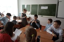 В рамках районного семинара учителей начальных классов Шакирова Ф. М. дала открытый урок по математике в 5А классе по теме "Деление десятичной дроби на натуральное число" . Он был сконструирован на основе системно-деятельностного подхода в обучении, взятого за основу ФГОС. Учащиеся максимально стали субъектом педагогического процесса, происходящего на уроке. Элементы современных методов обучения, игрового и проблемного, примененных на уроке, были направлены на пробуждение интереса к математике, развития навыков самообучения и воспитания в детях качеств человека с активной жизненной позицией .