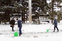 Надо благодарно принимать.В минувшие сутки выпало достаточно большое количество снега, но в школе поддерживается акция «Снежок». Учащиеся чистят обелиск и школьный каток.
