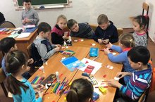Открытие "Столовой для пернатых друзей". Дети начальных классов со своими родителями смастерили комушки.