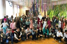 В 15-00 прошла Ёлка учащихся 7-8 классов. Каждый класс подготовил яркое новогоднее театральное представление. Сделали селфи в Дедом Морозов, получили от подарки и потанцевали под елкой.
