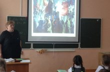 В начальных классах прошли темат. классные часы 2б класс с презентацией "Октябрьская революция в живописи" учитель ГилязоваЕ.Б.