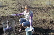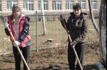 Первые весенние работы начались на пришкольном участке. Школьники белят деревья, сажают лук, перекапывают грядки и т.д. Работы хватает всем.