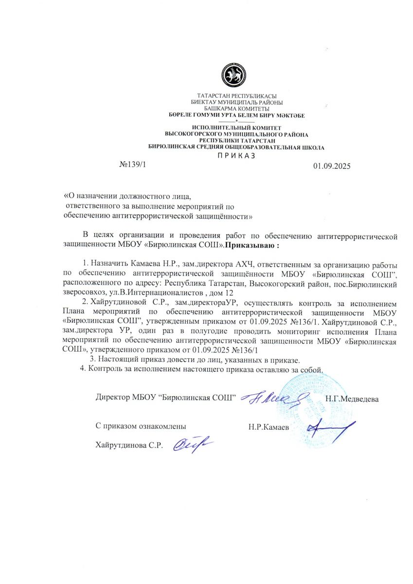 Муниципальное бюджетное общеобразовательное учреждение "Бирюлинская средняя общеобразовательная школа Высокогорского муниципального района Республики Татарстан"