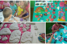 Во второй половине дня в нашем лагере ребята младшего возраста делали магнитики из гипса.Сколько восторга было на лице ребят , каждый своими руками залил формочку, а потом раскрасил.