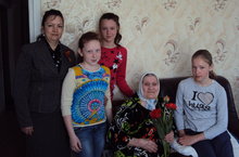 Без 6нчы сыйныф укучылары белән аяклары авырту сәбәпле митингка килә алмаган Майорова Антонина Семеновнаның 9нчы май көнне өйенә бардык. Аны чын күңелдән җиңү көне белән тәбрик иттек. Аңа чәчәк бәйләме, торт бүләк иттек. Иң зур бүләк укучылар аңа үзләре әзерләгән концертларын күрсәттеләр. Әбиебез бик сөенде.