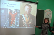 Гагарин и апрель.Сегодня, 12 апреля 2014 года, в нашей школе стартовала акция «108 минут вместе с Гагариным». Была проведена общешкольная линейка, где ознакомили с краткой биографией Ю.А.Гагарина и с историей первого космического полёта. В классах прошли классные часы, посвященные Дню космонавтики. День космонавтики в СССР отмечался с 1962 года, в России 12 апреля отмечается с 1995 года, а в 2011 году Генеральная Ассамблея ООН объявила 12 апреля Международным днем полета человека в космос. На данный момент День космонавтики отмечают уже более, чем в 60 странах мира.