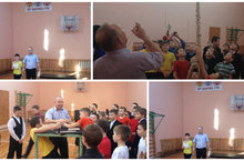 В рамках гражданско-патриотического месячника прошёл конкурс «А, ну-ка, парни!». Ученики 5-8 классов соревновались в подтягивании, одевании противогаза, лазании по канату, дартсу, в прыжках на скакалке, разборке и сборке автомата, армрестлинге.