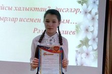 “Сөйлим әнием телендә” исемле районкүләм шигырь сөйләүчеләр бәйгесендэ 7 нче сыйныф укучысы Ташевцева Элина III урынга лаек булды
