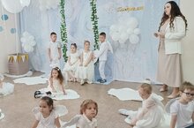 Праздник открыли с танца "Ангелы" посвященный мамочкам. Нежные стихи и песни о маме звучали сегодня на утреннике.
