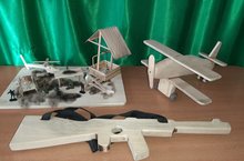 К конкурсу "Татар малае", который прошел в нашем детском саду, мальчики совместно с папами сделали деревянные игрушки. Все игрушки были посвящены военной тематике.