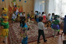 Сегодня в старшей группе "Астра" прошел праздник, посвященный Осени. Дети отправились в путешествие в лес в поисках осени. По пути им встретились Рябина, Золотая рыбка, Дождь, Девочки станцевали "Танец с рябинами", мальчики - "Танец Лягушек". В конце дети нашли Осень. Осень подарила детям свои дары.