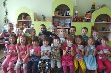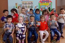 Уртанчылар төркеме балалары Сафиуллина Алсу Рашидовна алып килгән бүләкләр белән. Малыши средней группы со светоотражающими наклейками, которые подарила Сафиуллина Алсу Рашидовна. 22.03.2019