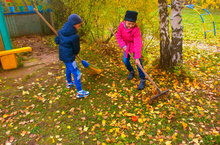 Көзге өмә 06.10.2016 Көзге өмәдә балалар да катнаштылар. Алар тәрбиячеләр белән бергә уен мәйданчыкларындагы саргаеп коелган яфракларны тырмаладылар, себерделәр.