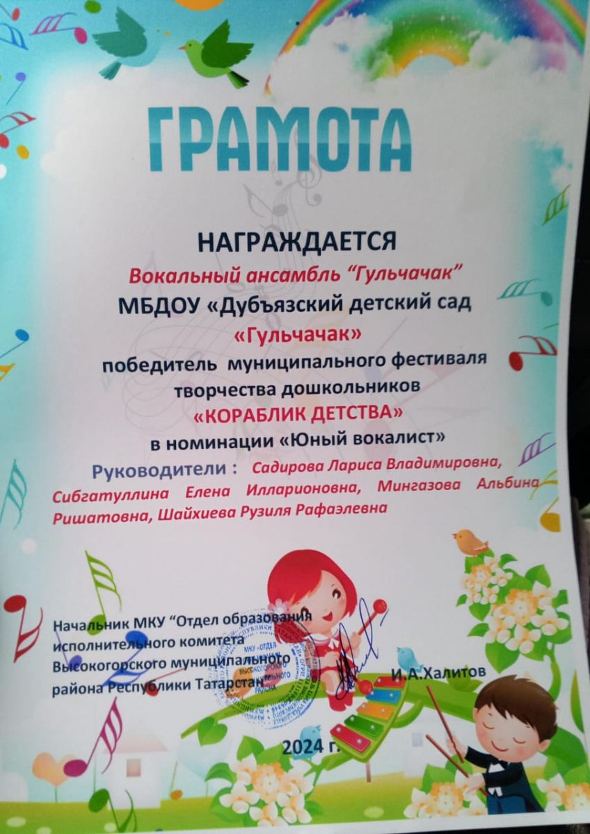 Муниципальное бюджетное дошкольное образовательное учреждение «Дубъязский детский сад «Гульчачак» Высокогорского муниципального района Республики Татарстан»/"Татарстан Республикасы Биектау муниципаль районының "Дөбьяз"Гөлчәчәк"балалар бакчасы ,мәктәпкәчә белем бирү муниципаль бюджет учреждениесе.