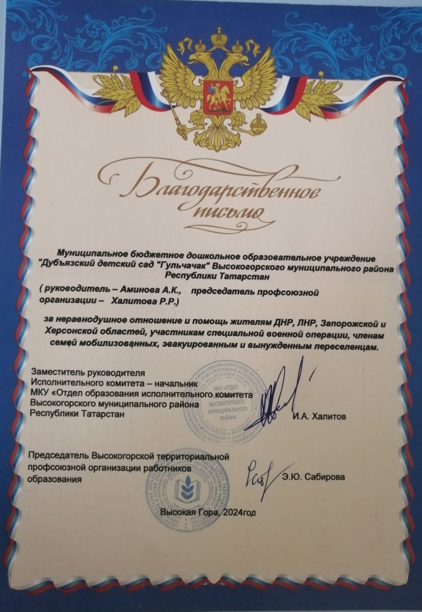 Муниципальное бюджетное дошкольное образовательное учреждение «Дубъязский детский сад «Гульчачак» Высокогорского муниципального района Республики Татарстан»/"Татарстан Республикасы Биектау муниципаль районының "Дөбьяз"Гөлчәчәк"балалар бакчасы ,мәктәпкәчә белем бирү муниципаль бюджет учреждениесе.