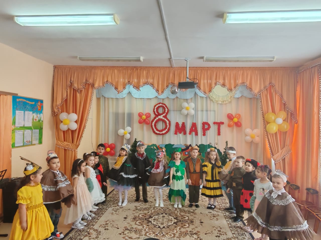 Утренник в старшей группе "Подснежник". "Умырзая" зурлар төркемендә 8 Март бәйрәме.