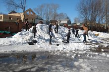 В рамках проекта "День добрых дел в Высокогорском районе" учащиеся детской общественной организации "Солнышко" очистили школьную площадку от снега.
