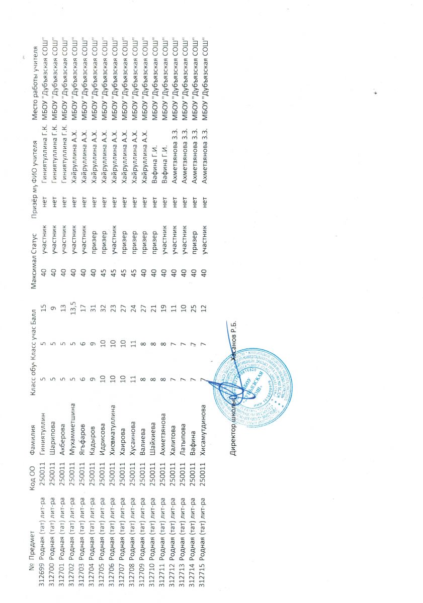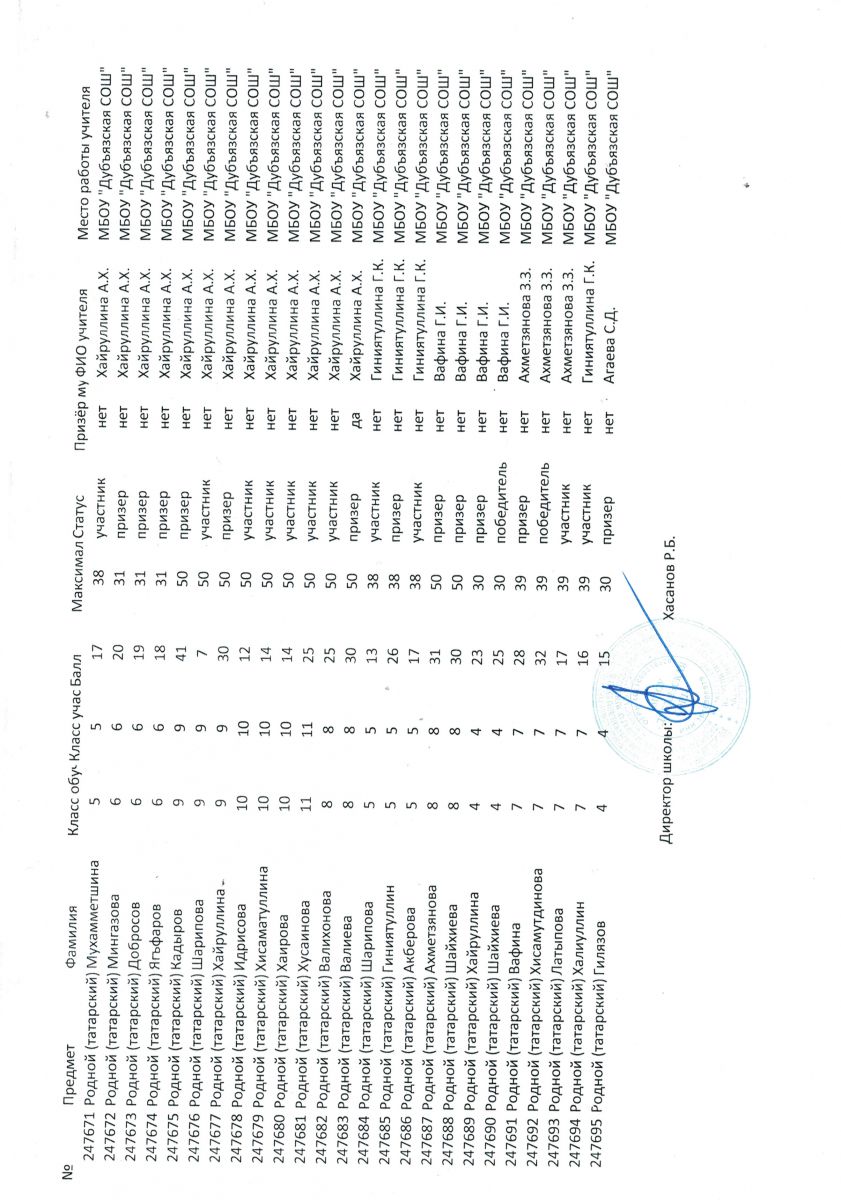 Протокол по родному (татарскому) языку для обучающихся с родным языком обучения