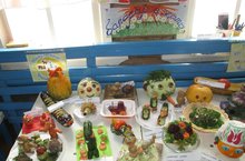 Катнаш төркем балалары һәм башлангыч сыйныф укучылары торышлыгы белән әзерләнгән көзге уңыш күргәзмәсе.
