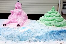 Праздничное оформление снежными фигурами территории станции Высокая Гора 21.12.2018