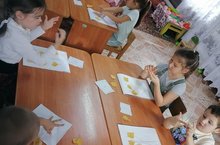 "Бу нинди төс?" исем астында төсләрне дөрес таба белү,әйтә белү максатыннан өстәл уены уйнадык.