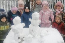 На свежем воздухе с детьми сделали первого снеговика,поиграли в игры.