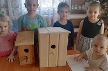 Балалар белән җылы яктан кайтучы сыерчыкларга кош оялары ясап элдек.