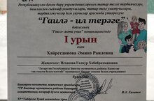 Мәктәбебез укучысы Хәйретдинова Әминә "Гаилә-ил терәге Республика конкурсында 1 нче урын яулады.