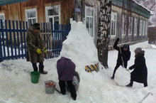 Приближается Новый год. Мы из снега начали делать фигуры - персонажи из сказок.