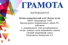 Поздравляем юнармейскйи отряд "Кодекс чести" с почетным 2 местом!!!