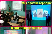 В рамках антитеррористической декады в школе прошли классные часы "Что такое терроризм" (1-4 кл), "Как вести себя в экстренных ситуациях" (5-7 кл), "Антитеррор. Безопасность детей" (8-11 кл).