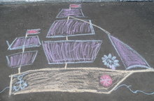 сегодня прошёл конкурс рисунков на асфальте. вот какие красивые кораблики нарисовали наши моряки