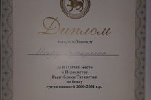С 13.01 по 17.01.2016г. в Казани состоялось Первенство Республики Татарстан по боксу среди юношей 2000 - 2001 г.р. Учащийся нашей школы Гизатуллин Ильдар принял участие в Первенстве по боксу и занял почётное 2 место, был вручён диплом и медаль.