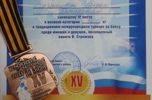 В городе Надым Российской Федерации прошёл традиционный международный турнир по боксу среди юношей и девушек, посвящённый памяти В.Стрижова. В ткрнире принял участие учащийся нашей школы Гизатулин Ильдар, ученик 9 класса, воспитанник тренера Сагитова Марселя Марсовича. Ильдар завоевал на турнире почётное 3 место, награждён дипломом и бронзовой медалью. Мы гордимся тобой, Ильдар. МОЛОДЕЦ!!! ПОЗДРАВЛЯЕМ!!!