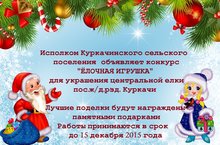 Исполком Куркачинского СП объявляет конкурс "Ёлочная игрушка" для украшения поселковой ёлки. Лучшие поделкт будут награждены памятными подарками.