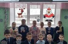 Ученики 1класса с классным руководителем Мубаракшиной Г.Г. участвуют в акции "Новогодние окна".