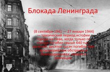 Блокада Ленинграда длилась 900 дней и стала самой кровопролитной блокадой в истории человечества. Историческое значение обороны Ленинграда огромно. Советские воины остановив вражеские полчища под Ленинградом, превратили его в мощный бастион всего советско-германского фронта на северо-западе. Сковывая значительные силы фашистских войск на протяжении 900 дней, Ленинград тем самым оказал существенную помощь развитию операций на всех других участках обширного фронта. В победах под Москвой и Сталинградом, под Курском и на Днепре - весомая доля защитников Ленинграда.