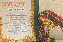 С 18 по 20 октября 2017 года в г. Казани состоялся I этап Открытого Первенства РСДЮСШОР по фигурному катанию на коньках. Наша спортсменка Саида Закирова завоевала почетное 1 место в I спортивном разряде в произвольной и короткой программах. Занимается Саида под руководством тренера-преподавателя Евстигнеевой Д.О.. Поздравляем!