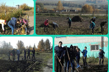 Бездә бүген хезмәт десанты. Укучыларыбыз мәктәп бакчасында көзге эшләрне башкардылар.