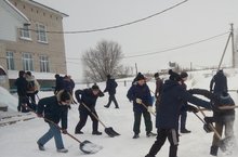 Бүген 6 нчы сыйныф укучылары һәйкәл янын кардан арындырдылар, “Кар десанты” акциясе үткәрделәр.