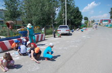 Рисунки на асфальте. Лагерь "Тамчы" 15.06.2015 Асфальтта рәсем ясау конкурсы уздырдык. Темасы: "Без бәхетле җирдә яшибез!"